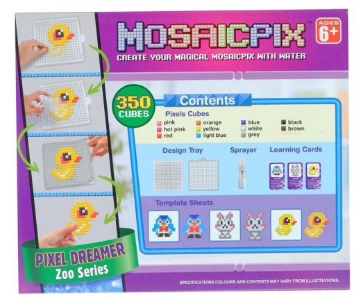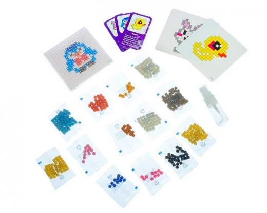 Конструктор игровой Животные 350 эл – это весьма интересный и занимательный подарок для юного любителя мозаик. Аквамозаика под воздействием жидкости превращается в объёмную фигурку, с которой можно играть. Юному любителю творчества необходимо лишь выбрать шаблон, затем выложить бисер по трафарету и смочить полученную фигурку водой. И вуаля – произведение искусства готово! Такая замечательная мозаика надолго увлечет ребенка и подарит ему массу положительных эмоций. А сам игровой процесс зарядит его отличным настроением.