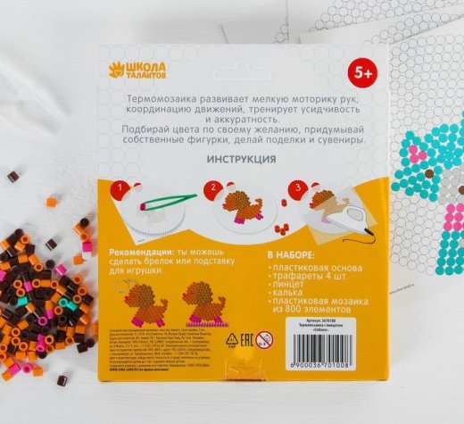 Такую картинку можно подарить другу или подруге или украсить ею комнату. Набор термомозаики позволит детям создать их первые шедевры и сохранить их на долгое время.