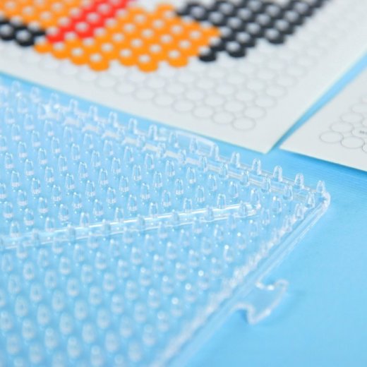 Создавать термомозаику совсем несложно. Подложите картинку под прозрачное основание таким образом, чтобы штырьки на основании совпали с центрами элементов на схеме. Затем вставьте в штырьки основания элементов соответствующих цветов. Положите на работу пергамент и прогладьте сверху утюгом, нагретым на минимальную температуру. Элементы подплавятся и соединятся друг с другом. Разъедините работу и основание и прогладьте работу через пергамент с другой стороны. Чтобы готовая фигурка не выгибалась, сразу положите ее под пресс, например, под пачку книг.