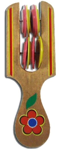 Деревянная румба является оригинальным инструментом, который отличается весьма звонким звуком и абсолютной простотой в использовании. Он имеют длину 16 см и предназначен для детей. Удобная рукоятка легко помещается в маленькой ладошке. Потряхивая румбой, дети смогут извлекать тонкий звук, а развивая чувство ритма, смогут наигрывать различные музыкальные мелодии. Игрушка имеет привлекательный дизайн, корпус выполнен из натурального дерева, а тарелочки из качественного пластика. Однотонный яркий фон основания с красочными узорами создает дополнительную веселую атмосферу.