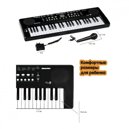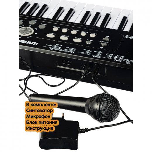 Синтезатор детский "КЛАВИШНИК" с микрофоном и блоком питания ТМ Bondibon познакомит ребенка с миром музыки, позволит самостоятельно учиться играть на синтезаторе, развивая музыкальный слух, способствуя гармоничному развитию с малых лет. Компактный синтезатор не займет дома много места, поэтому его очень удобно использовать в качестве домашнего музыкального инструмента. Клавиатура синтезатора состоит из 49 клавиш, две колонки обеспечивают качественный стереозвук, в комплекте синтезатора микрофон, питание инструмента возможно от сети 220 В или 6 батареек АА 1,5В (в комплект не входят).