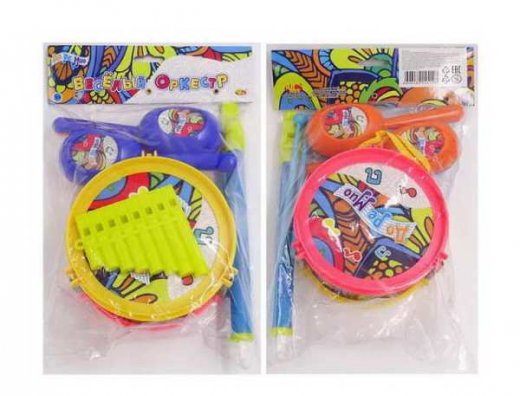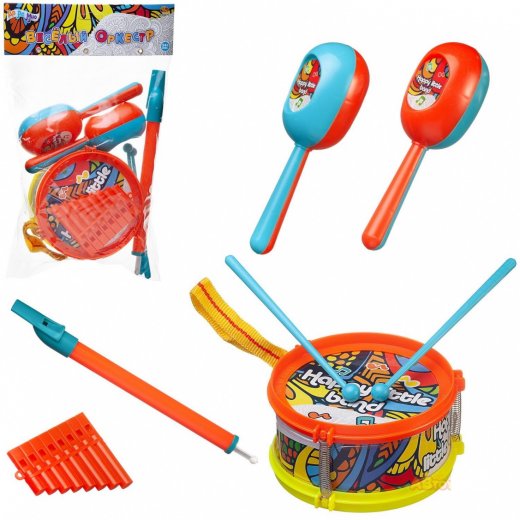 Купить Набор музыкальных инструментов маракасы, барабан, дудка, губная гармошка в Новосибирске Вы можете в магазине развивающих и настольных игр "Игры Почемучек".