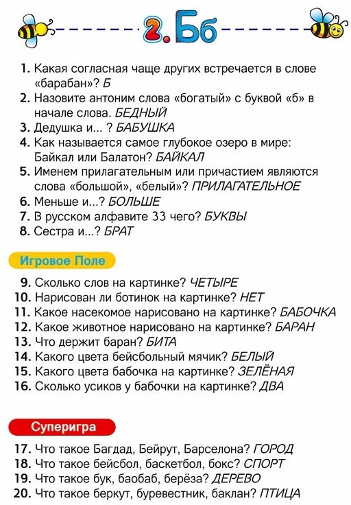 Настольная игра Азбука с Ксюшей и Андрюшей – это увлекательно-познавательное занятие для ребенка. Азбука и грамматика, существительные и глаголы, названия стран и городов, животных и растений, музыка и живопись и много-много полезной информации содержится в 800 вопросах этой игры. Пройдите своей фишкой первым от Старта до Финиша по игровой дорожке с 40 картинками Азбуки, правильно отвечая по очереди на вопросы карточек.