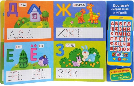 Издательский Дом "Азбукварик" представляет вашему внимаю книгу "Говорящий смартфончик" - Азбука в стихах (звук), со съемным модулем-смартфончиком! Книга отличный помощник родителям в обучении детей, малыш с легкостью запомнит алфавит, и улучшит память. Смартфончик можно извлечь из азбуки и поиграть с ним. А приятное звуковое сопровождение (веселые песни мультяшек про алфавит) и шестнадцать страниц с яркими красочными изображениями скрасят его досуг!