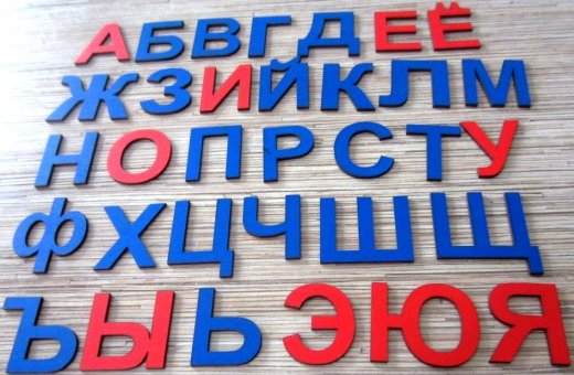 Состав набора: 33 буквы.