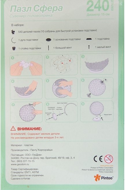 Собрав объемный пазл, ребенок получит полноценный глобус, который поможет ему в учебе, кроме того, юный географ сможет самостоятельно узнать много нового о разных странах. Либо вы можете поставить его на видное место как сувенир.