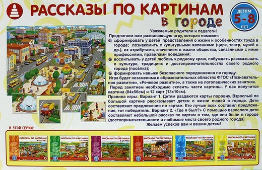Купить настольную игру Рассказы по картинкам В городе в Новосибирске Вы можете в магазине настольных и развивающих игр «Игры Почемучек».