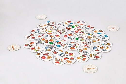 - Игра начинается. Игроки смотрят на свои жетоны и стараются найти к нему пару среди жетонов на столе.