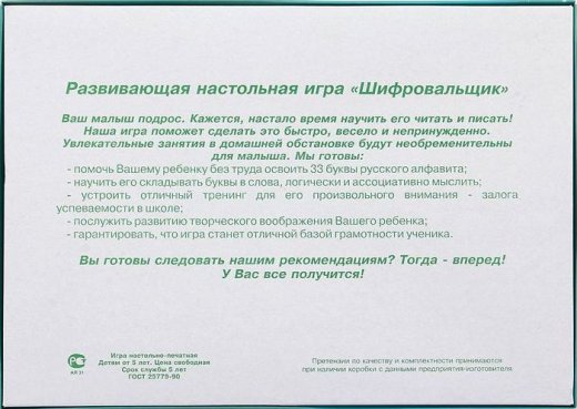 Настольная игра "Шифровальщик" поспособствует разностороннему развитию детей и расширению их кругозора.