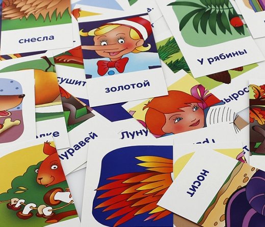 В данный набор входят 48 карточек, из которых можно составить 16 картинок. Если правильно собрать картинку, получится правильно оформленное предложение. В игре используется как лицевая сторона карточки, так и оборотная, что позволяет повысить эффективность обучения чтению.