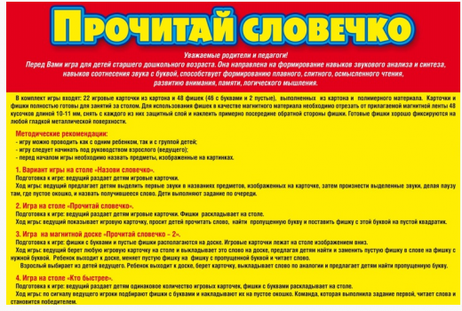 Купить Дидактическую игру Прочитай словечко в Новосибирске Вы можете в магазине развивающих и настольных игр "Игры Почемучек"