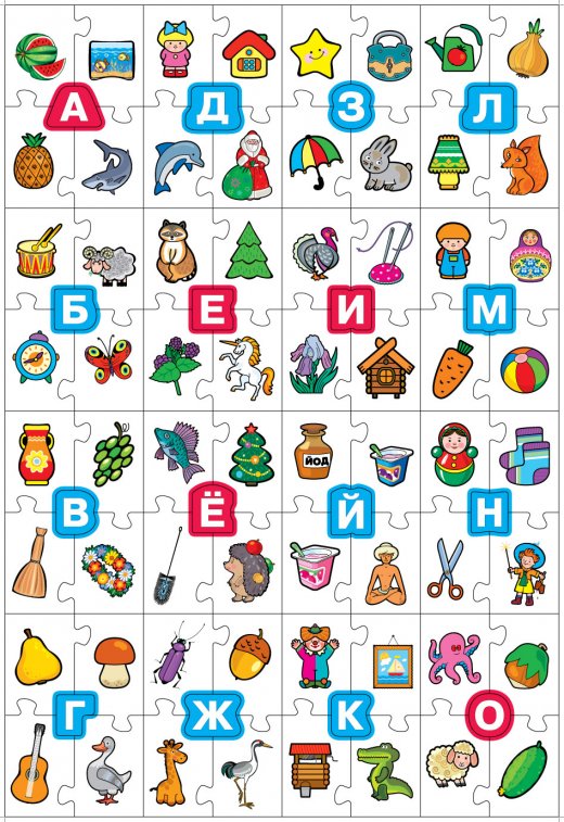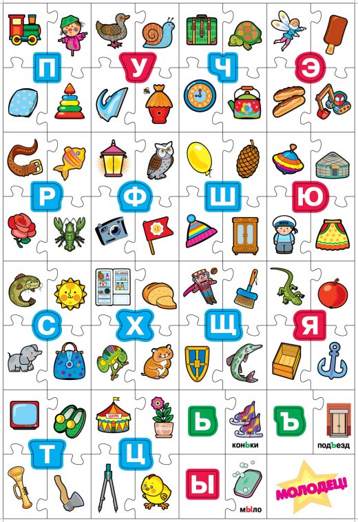 Игрокам нужно собрать свои карточки из пазлов и сделать это быстрее соперников. В первую очередь участники обращают внимание на пазлы с буквами, к которым нужно подобрать картинки с изображёнными словами на эту букву. Игрок, сделавший это правильно и быстрее остальных, становится победителем!