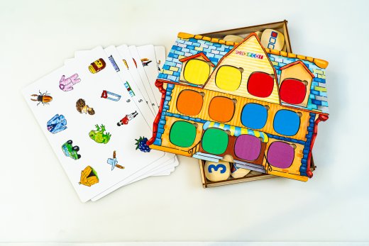 2. Игра «Назови правильно». Вставьте одну из карточек в Логодомик, цветные окошки разложите на столе. Предложите ребенку помочь жителям городка правильно назвать картинки на карточке и закрыть их цветными окошками. Когда все окошки будут закрыты, предложите ребенку вспомнить, какие картинки нарисованы на карточке? Какая картинка прячется под синим, зеленым, красным окошками?