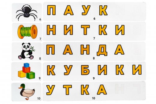 5. Игра "Подбери картинку". Разложите на столе карточки с картинками. Карточки со словами сложите в стопку, где простые слова будут расположены вверху. Задача ребенка взять верхнюю карточку из стопки, прочитать слово и подобрать к нему соответствующую карточку с картинкой.