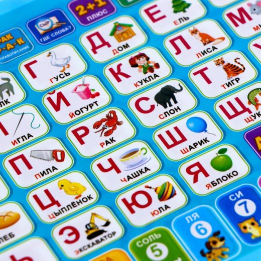 Занятия с устройством помогут ребёнку в игровой форме изучить алфавит, числа, слова, счёт. Благодаря полезным заданиям, интересным играм и вопросам малыш освоит и закрепит полученный материал.