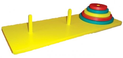 Головоломка Ханойская башня – это замечательный подарок для развивающегося юного разума. Головоломка "Ханойская башня" - это одна из наиболее известных логических игр. Ребенку предстоит перенести пирамиду, состоящую из пяти колец, на другой стержень, совершив как можно меньше ходов. За один раз можно перенести лишь одну деталь пирамидки, при этом запрещается класть большее кольцо на меньшее.