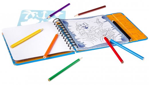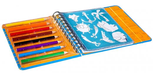 Мини игры в дорогу Рисуем в дороге Пираты – это весьма интересное и увлекательное занятие для ребенка. Раскраска выполнена в виде книжки с плотной обложкой и содержит 18 страниц с черно-белыми изображениями и трафареты на тему пиратов. К каждой картинке прилагается наклейка с идентичным цветным изображением. Кроме того, в наборе имеются карандаши, которые позволят раскрашивать рисунки по своему усмотрению и вкусу. Данный набор поможет детям разнообразить досуг, его даже можно брать с собой в поездки.