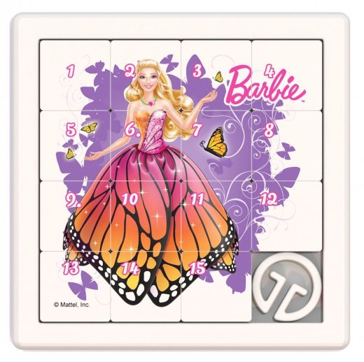 Логическая игра «Собирашки» по сути представляет собой классические пятнашки. Она состоит из игрового поля с 15 квадратиками, каждый из которых изображает фрагмент картинки. В пределах рамки также есть пустая ячейка. Ребенку нужно собрать все элементы рисунка воедино, чтобы получилась полноценная иллюстрация с изображением Барби. Все квадратики пронумерованы, это облегчает процесс игры.