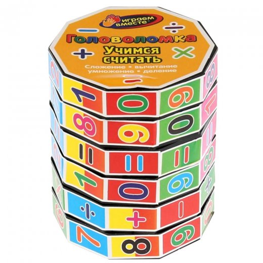 Математическая головоломка Играем вместе приятно порадует вашего ребёнка, увлечёт надолго и поможет развить в нём самые лучшие качества! У игрушки стильный дизайн – она очень яркая и разноцветная. С подвижными деталями – прокрутите круг-часть, и получите пример.
