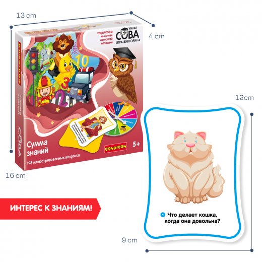 Прививайте ребенку интерес к знаниям и расширяйте кругозор с увлекательной игрой СУММА ЗНАНИЙ от Bondibon! Викторина разработана на базе авторской методики обучения, предполагающей новую форму подачи материала.
