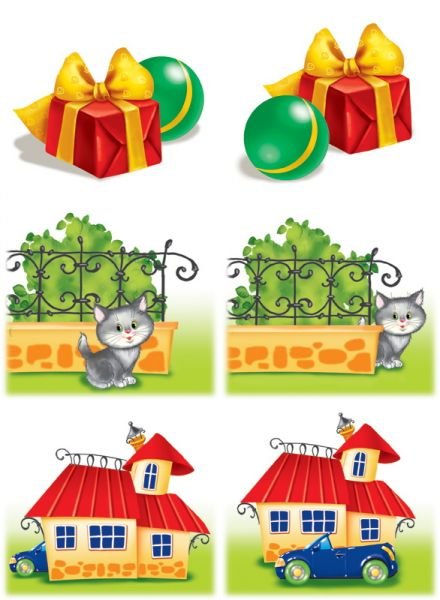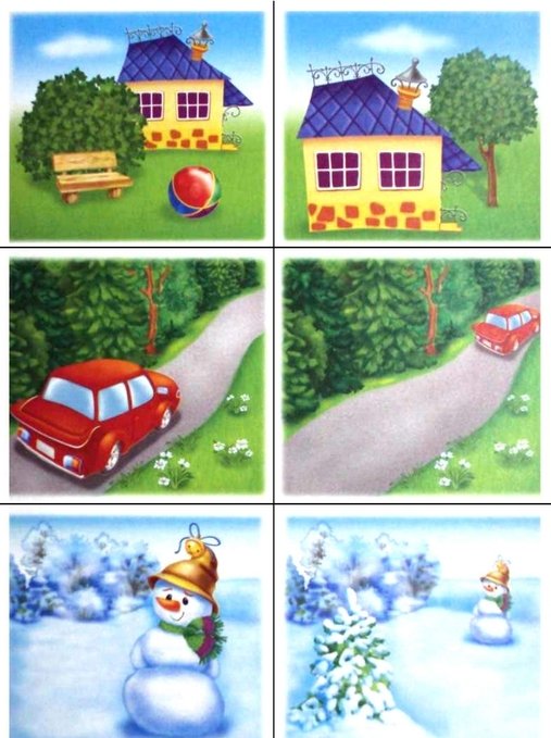 2)Предложите ребенку разобрать все карточки по парам. Затем объясните, чем отличаютсякартинки, используя в речи пространственные понятия и предлоги(На этой картинке домик далеко, а на этой близко, на этой картинке машинка под столом, а на этой на столе). Всего в инструкции описано 4 варианта игры, но на самом деле их можно придумать огромное множество и со своими правилами.