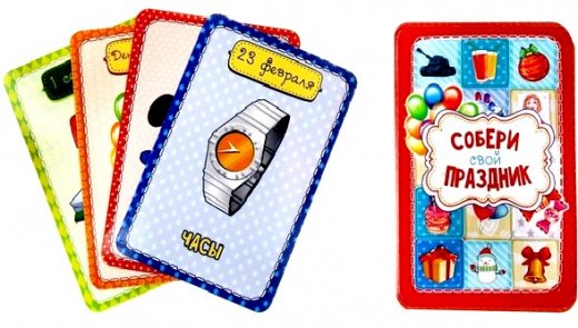 Игра детская Собери свой праздник – это весьма интересный и познавательный набор для ребенка. Этот игровой набор поможет ребенку ознакомится со всем многообразием праздников, таких как: Новый год, 23 февраля, 8 марта, 9 мая, 1 сентября, День Рождения и т.д. "Собери свой праздник".Как же много праздников мы отмечаем!... И для каждого события есть свой неповторимый символ. Учитесь, собирайте карточки и выигрывайте!
