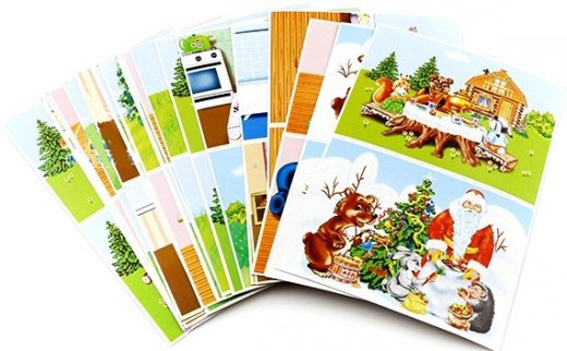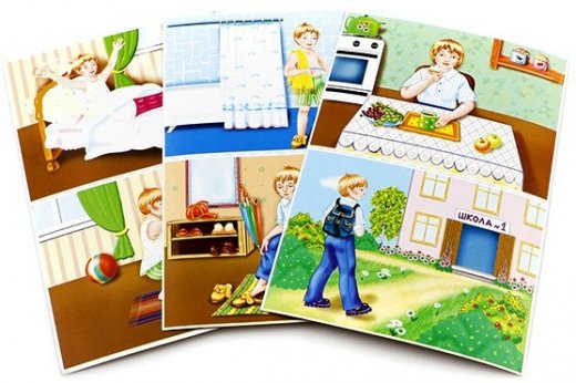 2) Определить лишнюю карточку - ведущий смешивает карточки из разных сюжетов, а игроки должны вернуть их на свои места. Для начала добавляйте в сюжет одну лишнюю карточку, а после увеличивайте их число. Такая игра стимулирует у ребенка внимание, развивает реакцию и наблюдательность.