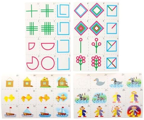 2)Запомнить предметы - ведущий выкладывает несколько карточек и предлагает ребенку посмотреть на них внимательно. После карточки убираются, а ребенок называет те предметы, которые он смог запомнить. Такая игра стимулирует у ребенка внимание, развивает память и наблюдательность, а также улучшает визуальное восприятие. Остальные варианты игр подробно описаны в правилах.