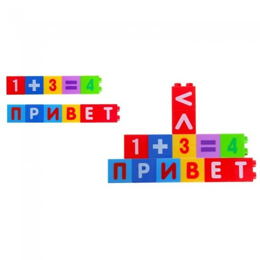 Конструктор обучающий "Алфавит", 60 обучающих карточек, 33 кубика, 4 вида наклеек, часики, 5 карточек с математическим заданием - это многофункциональный, развивающий конструктор, который поможет Вашему ребенку в изучении цифр, алфавита, слов, времени суток, а так же в развитии воображения, логического мышления, мелкой моторики, цветового восприятия, навыков конструирования.