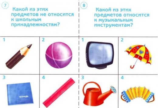Тестовые задания Готов ли ты к школе? Окружающий мир Предметы - отличный подарок для будущих школьников! Материал для проверки знаний об окружающих нас предметах перед поступлением в школу. Перед началом занятий разрежьте карты по пунктирным и сплошным линиям. У вас получится 24 карточки с заданиями и 24 маленькие карточки с картинками. Задания основаны на исключении или выделении предмета по какому-либо признаку. В каждом тесте ребенку предлагается 4 варианта ответа. Для выполнения заданий ваш ребенок подключает всю логику и сообразительность! Маленькие карточки с божьими коровками – это призы за правильные ответы.