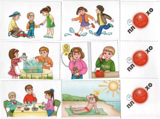 Развивающая игра Хорошо или плохо – – это довольно интересная развивающая игра для ребенка. Карточки для игры яркие и красочные, поэтому с легкостью привлекут внимание ребенка и увлекут в игру. Цель этой игры - знакомство детей дошкольного и младшего школьного возраста с общепринятыми нормами поведения, правилами безопасности и личной гигиены. Важнейшим фактором развития эмоционально-чувственной сферы ребенка является сама жизнь, взаимоотношения с окружающим миром. Именно поэтому в данной игре предлагаются 18 ситуаций из жизни, которые знакомы детям и доступны для их понимания. Подбор этих ситуаций продиктован еще и тем, что ребенку будет легко давать положительную или отрицательную оценку ситуаций. Оценивая поведение изображенных в игре детей, несомненно, малыши усваивают нормы поведения. Такая игра это весьма интересный и увлекательный вариант для времяпрепровождения досуга ребенка, который подарит ему массу положительных эмоций, а сам процесс, несомненно приведет ребенка в восторг и зарядят его отличным настроением.