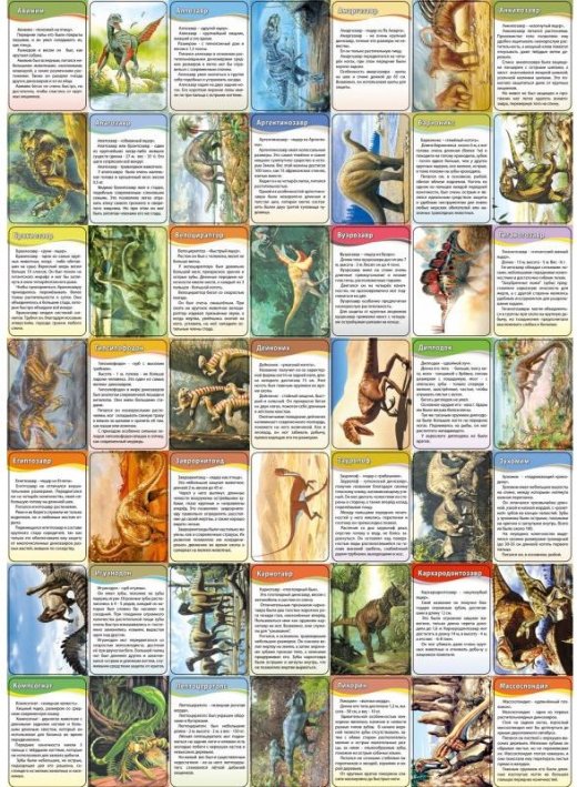 Детям о динозаврах (серия шпаргалки для мамы) – это замечательный подарок для ребенка, который несомненно ему понравится. Каждый ребенок всегда интересуется чем-то интересным и загадочным, таким как доисторический мир динозавров и малышу несомненно будет интересно узнать побольше и увидеть этих величественных животных. В наборе 50 карточек с изображением самых разных динозавров от миролюбивых травоядных и до самых свирепых хищников всех времен тираннозавров. Здесь есть самые маленькие динозавры, меньше полуметра в высоту. И есть самые огромные например Аргентинозавр – это самый крупный сухопутный динозавр, его вес свыше 100 тонн, это примерно 15 африканских слонов. На одной стороне карточки нарисован динозавр, а на обратной стороне информация о нем.