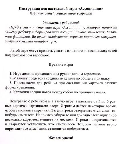 Игра «Ассоциации», которая поможет вашему ребёнку в развитии ассоциативного мышления и фантазии. Во время складывания игровых карточек совершенствуется мелкая моторика рук.