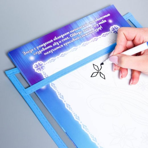 Набор для творчества с развивающими карточками "Холодное сердце" незаменимый помощник для родителей и педагогов. С этой папкой карточки с заданиями можно использовать неограниченное количество раз: прописи, лабиринты, раскраски, логические игры теперь не нужно покупать вновь и вновь. Теперь ребенок может оттачивать навыки рисования и письма и не бояться ошибиться. Просто сотрите след от фломастера ластиком и можно рисовать снова!