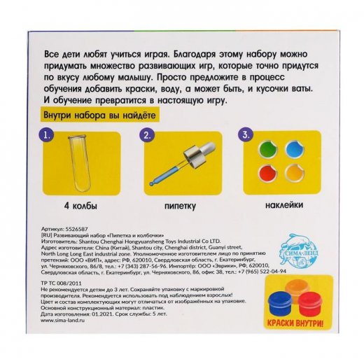 Купить Развивающий набор Пипетка и колбочки в Новосибирске Вы можете в магазине развивающих и настольных игр "Игры Почемучек"