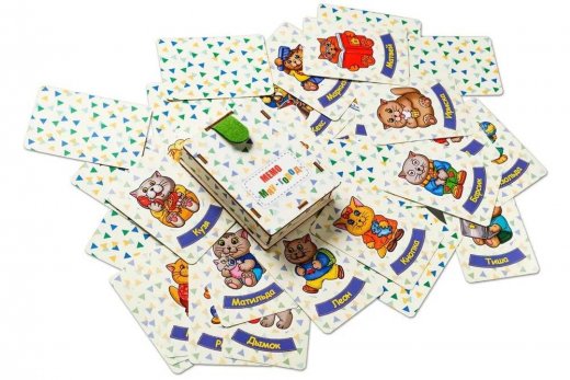 Материал: фанера, бумага Размер коробки: 11 см х 8 см х 3 см Размер карточек: 6,5 см х 9 см
