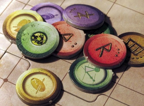 Целью магов являются руны. Для каждого цвета существует набор из рун с силой от 1 до 4. Сила руны отображается количеством точек на соответствующем ей жетоне.