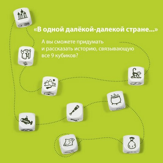 У этой игры такие простые правила, что ты можешь дополнить их или придумать свои. Например, каждый новый бросок кубиков – это продолжение истории. Кроме того, создатели предлагают вообще не называть выпавшие изображения в своей истории. Только ассоциативное мышление, только вдохновение!