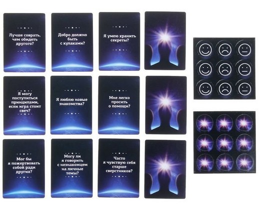 Раздайте всем смайлики ответов, перемешайте карты с вопросами и поместите колоду в центр стола. Отвечайте на них «улыбчивыми» жетонами тайно от других игроков. А следующий участник должен поставить себя на ваше место, догадаться о вашем решении и положить свою фишку ответа, и так друг за другом. Кому удалось прочитать мысли соседа, получает победные очки. Игрок, который набрал больше всех баллов, получает звание лучшего телепата.