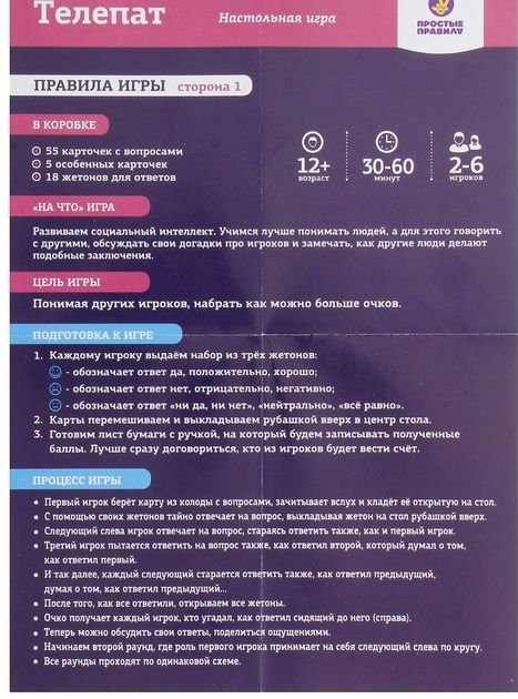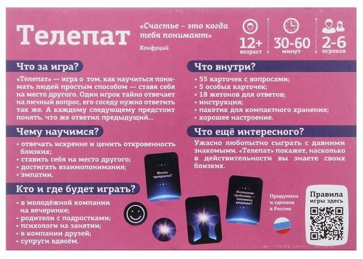 Настольная игра Телепат - открывает очень интересные факты об отношениях и взаимопонимании группы друзей или родственников.