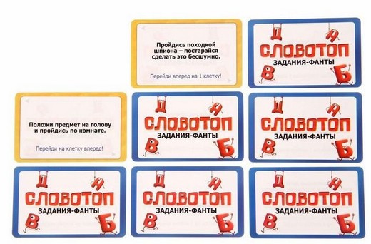 А если ваша фишка встала на клетку «Задание-фант», скорее тяните карточки и выполняйте весёлые поручения! Если игрок справляется с заданием, то он передвигает свою фишку на столько клеток, сколько написано на карточке.