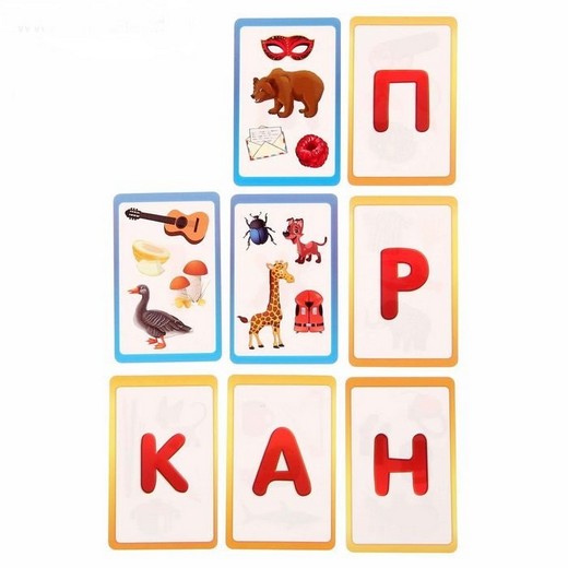 Передвигайте фишки по игровому полю, вспоминайте как можно больше слов на указанные темы и побеждайте! По очереди вытягивайте карточки с буквами и называйте слова на тему, которая написана на клетке, где стоит ваша фишка. А потом сделайте столько шагов, сколько слов у вас получилось вспомнить. На обороте карточек вас ждут увлекательные задания на внимание: смотрите на картинки, ищите лишние изображения и делайте ещё один ход за правильный ответ.