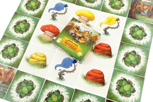 В центре стола расположите 9 карт леса. На картах леса изображены разноцветные камни, грибы и листья. Цель игроков – как можно скорее добраться до противоположной стороны леса и завладеть орехом. Загвоздка в том, что перейти через лес можно только если наизусть знаешь тропинку. Задача игроков – быстрее остальных собрать пять орехов, обеспечив тем самым себе провизию на зиму.