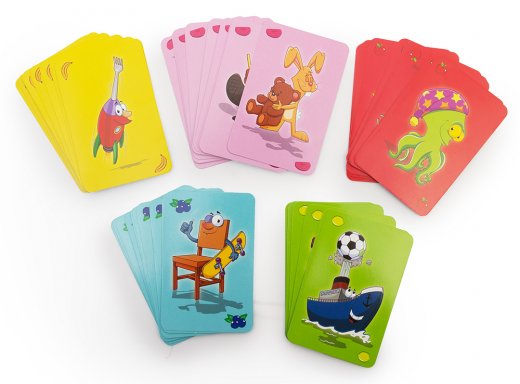Проверьте свою реакцию! На старт! Внимание! Марш! Находите пары карт одного цвета и первым верно выполняйте задание, чтобы получить эти карты в награду! Сколько ног видно? С чем это рифмуется? Кто тяжелее? Будьте внимательны – задания постоянно меняются.