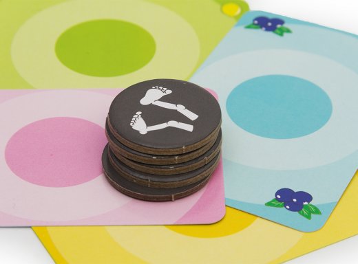 Жетон на радужной карте в центре стола соответствует заданию, которое должны выполнить игроки, открывшие две карты одного цвета. Например, ухо потребует рифмовать слова, рот издавать звуки, а гиря назвать самый тяжёлый предмет.