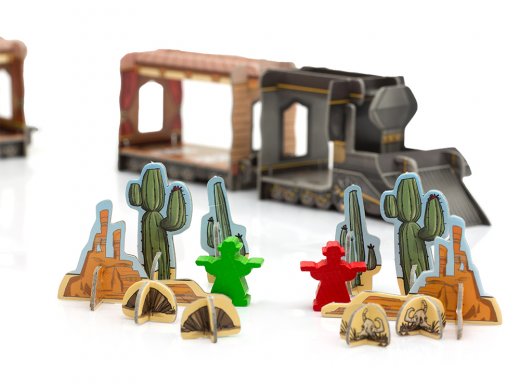 3. Поместите фигурку шерифа и жетон кейса в кабину локомотива. Оставшиеся жетоны добычи уберите обратно в коробку (за исключением второго кейса - положите его неподалёку, так как он может понадобиться в ходе игры).
