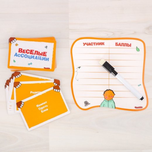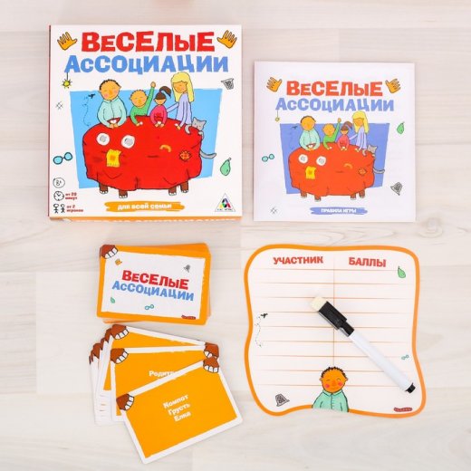 Настольная игра семейная "Веселые ассоциации" - эта увлекательная игра подходит для всей семьи. Участникам предстоит придумывать ассоциации к словам и получать за это очки!