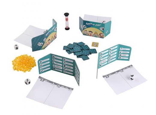 После того как все игроки выберут по кубику, переверните верхний жетон с буквой и песочные часы.