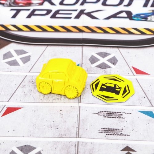 Бросайте кубик, передвигайте фишки по полю, открывайте жетоны и выполняйте задания на гоночном треке!