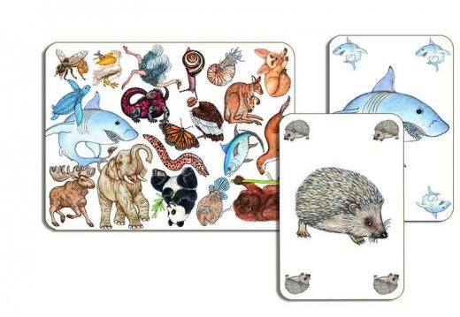 За это время игроки должны внимательно разглядеть изображение и детали, которые его составляют. Затем карта "путаница" переворачивается. Тогда каждый игрок должен положить перед собой все карты, где изображены животные, увиденные им на карте "путаница".